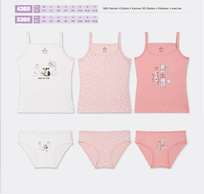 BR Набір6 білизни для дівчинки(майка+ТРУСИ) 4360/5360 CAT лапки 6(3)шт.