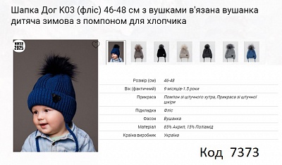 ALex Шапка в'язана на флісі для хлопчика (на зав'язках) ДОГ К03 46-48 5шт.