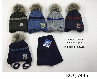 Grands Шапка+шарф в'язана на флісі для хлопчика (на зав'язках) А-1376 Р 44-46 1шт.
