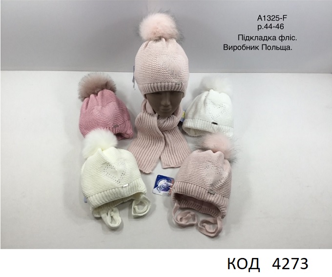 Grands Шапка+шарф в'язана на флісі для дівчинки (на зав'язках) А-1325 F 44-46 1(3)шт.
