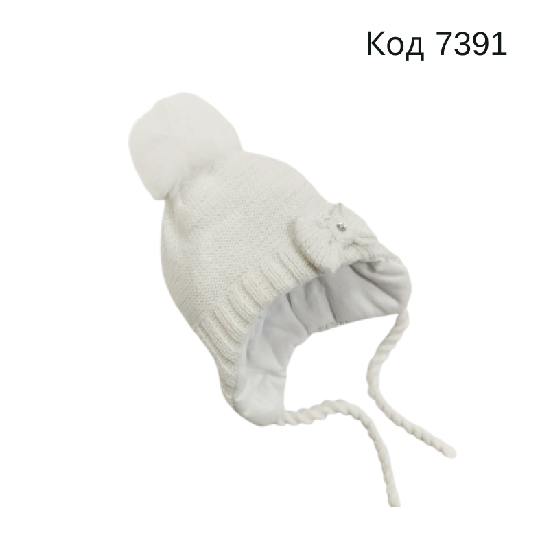 Yo Шапка в'язана ІЗОСОФТ на трикотажі для дівчинки (на завязках) Білий 42-44 5(1)шт