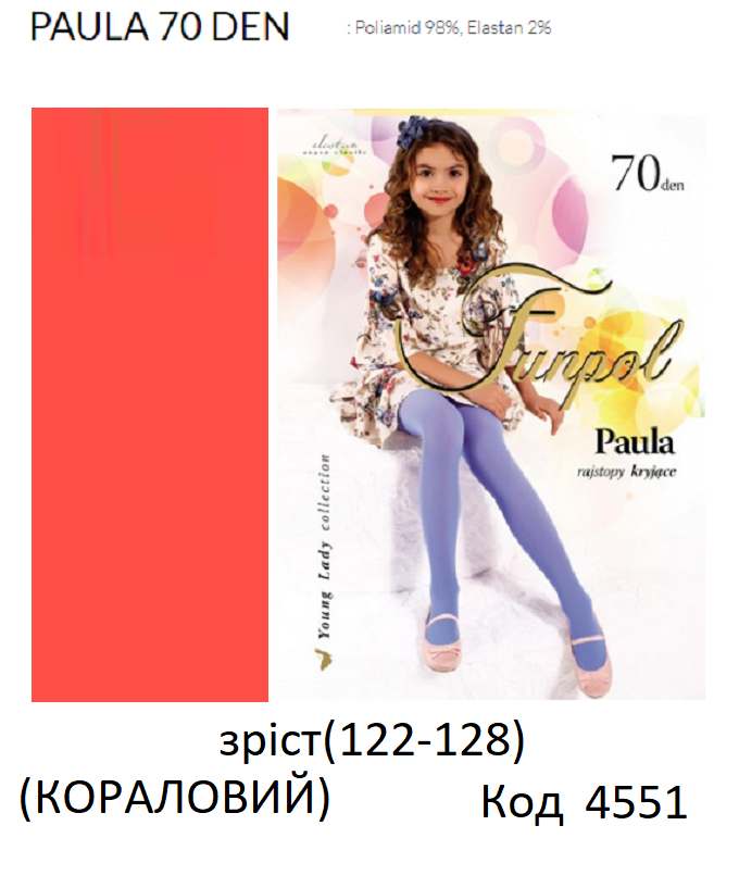 ,FR Колготки капронові PAULA 70DEN 122-128/134-140 кольорові 1шт