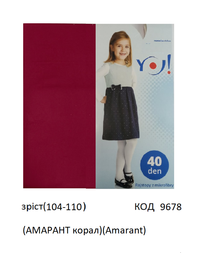 YO Колготки капронові RAM-0009 104-110 мікрофібра без малюнку 40 DEN Мікс кольорів1 шт
