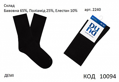 DUNA Шкарпетки бавовняні чоловічі 2240 ДЕМІ 25-27//27-29 Чорний 6(3)шт