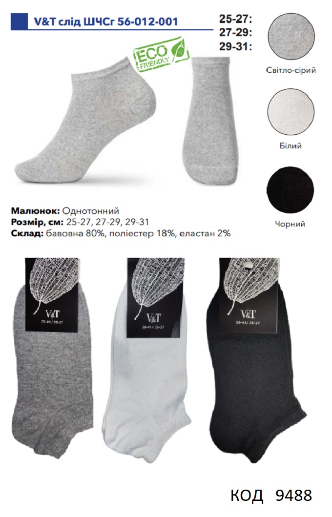 V&T Шкарпетки бавовняні чоловічі короткі ШЧСг 56-012-001 25-27//29-31 Мікс 12(3)шт
