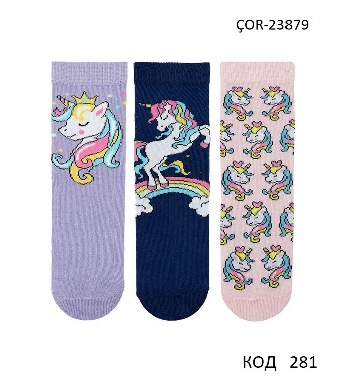 Bross Шкарпетки бавовняні для дівчинки МАЛЮНОК ÇOR-23879 МІКС 12(3)шт.