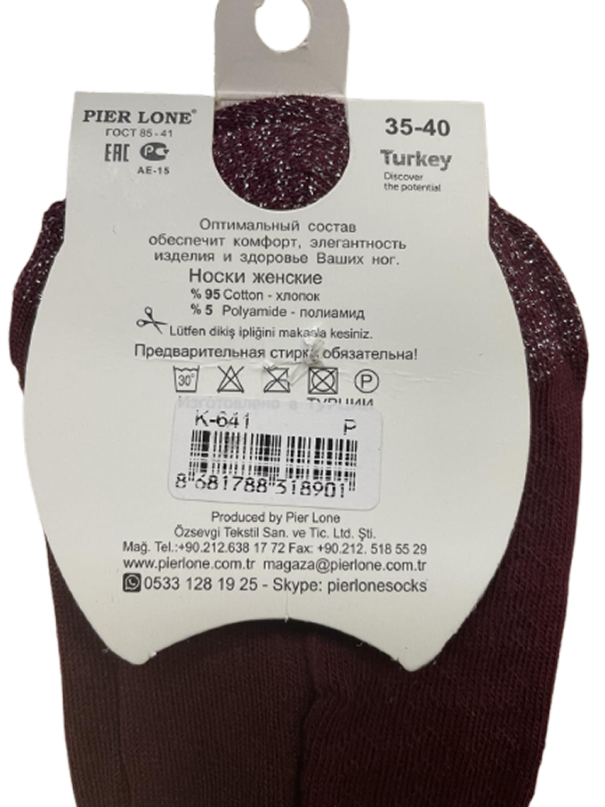 PierLone Шкарпетки жіночі МоноНИТКА люрекс К-641 МІКС 35-40 12(3)шт