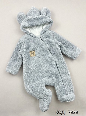 MarioKids Комбінезон вельсофт на підкладці ВЕДМЕЖА довга махра СІРИЙ 62,.68.74 1шт