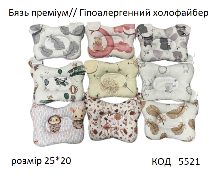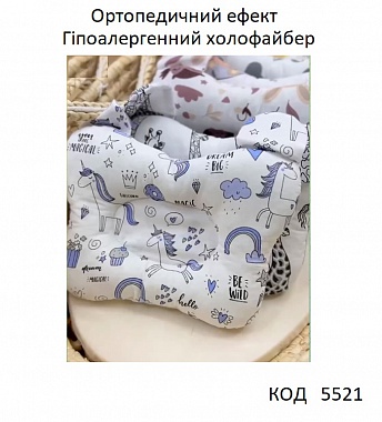 Ukr Подушка ортопедична з вушками для новонароджених БЯЗЬ/холофайбер 25*20 1шт