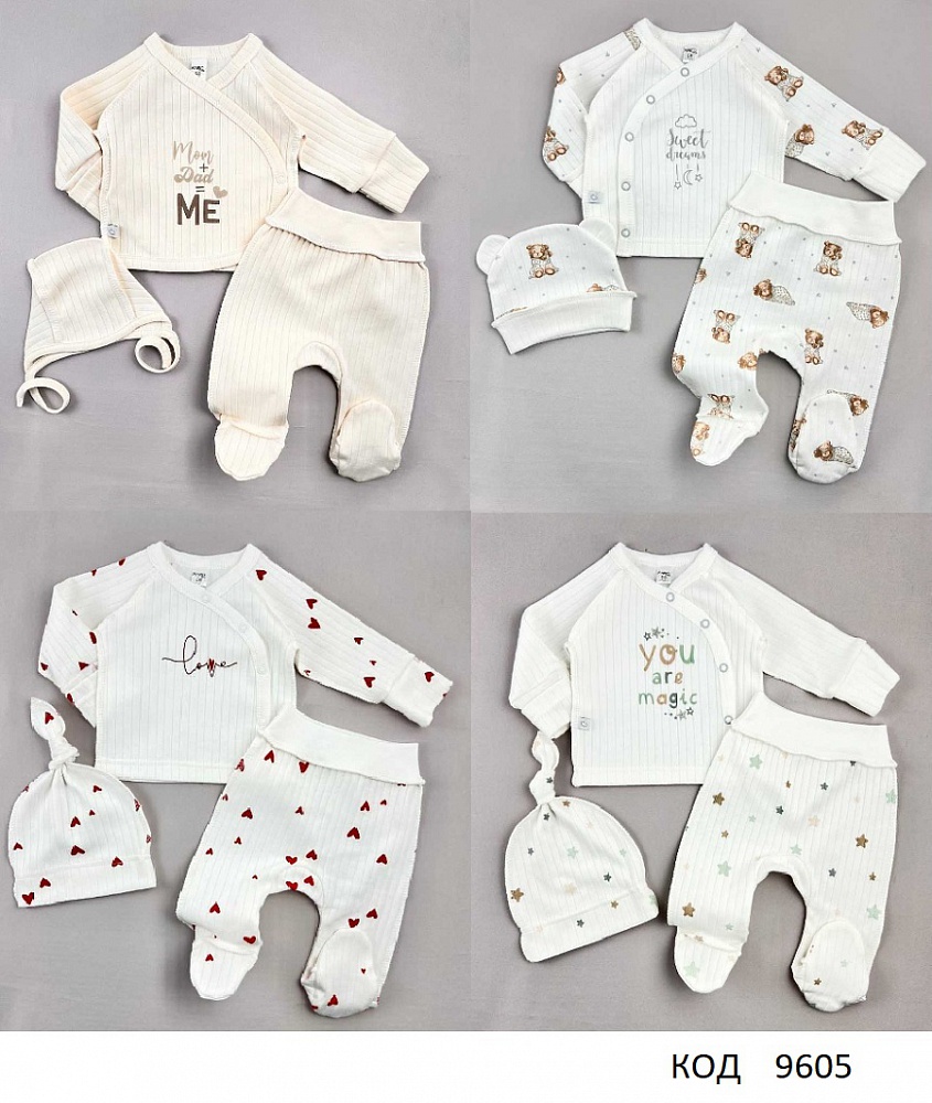 MarioKids Набір інтерлок фактурний (сорочка+повзунки+шапка) 56, 4шт.